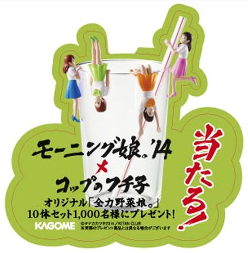 モーニング娘。’14とカゴメの野菜ジュース『野菜一日これ一本』のタイアップキャンペーンの案内。